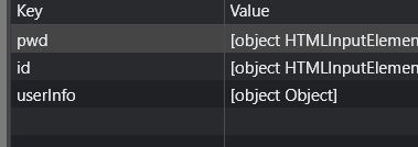 let userInfo = { id: idElement.value, pwd: pwdElement.value }