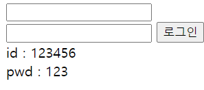 아이디에 123456, 비밀번호에 123을 입력했을 때의 결과입니다.